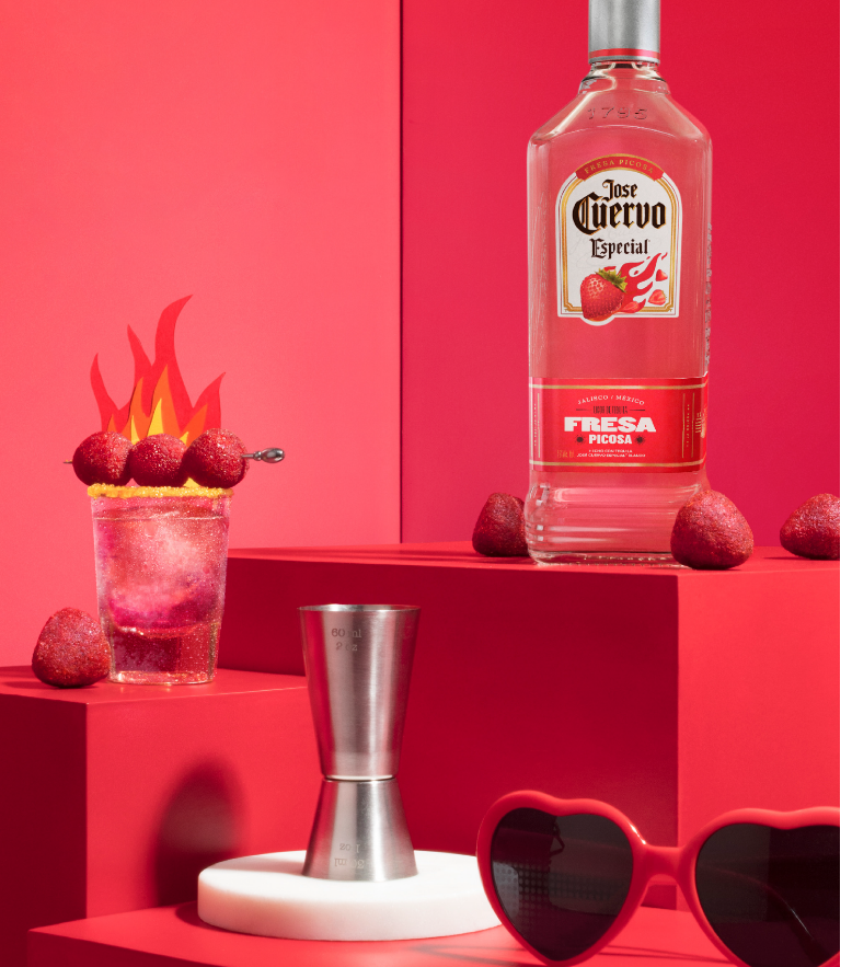 Enfría y agita tu José Cuervo Especial Fresa Picosa, jugo de limón y granadina